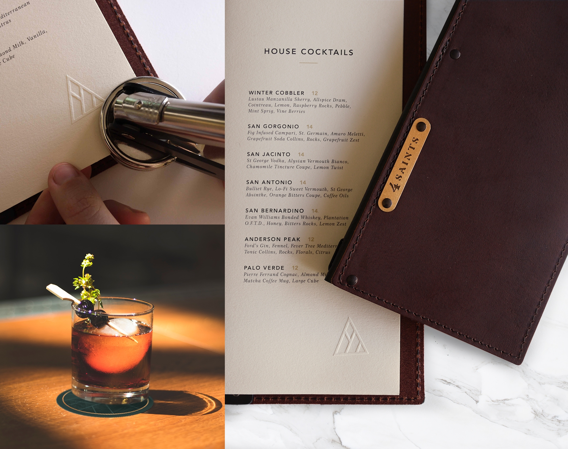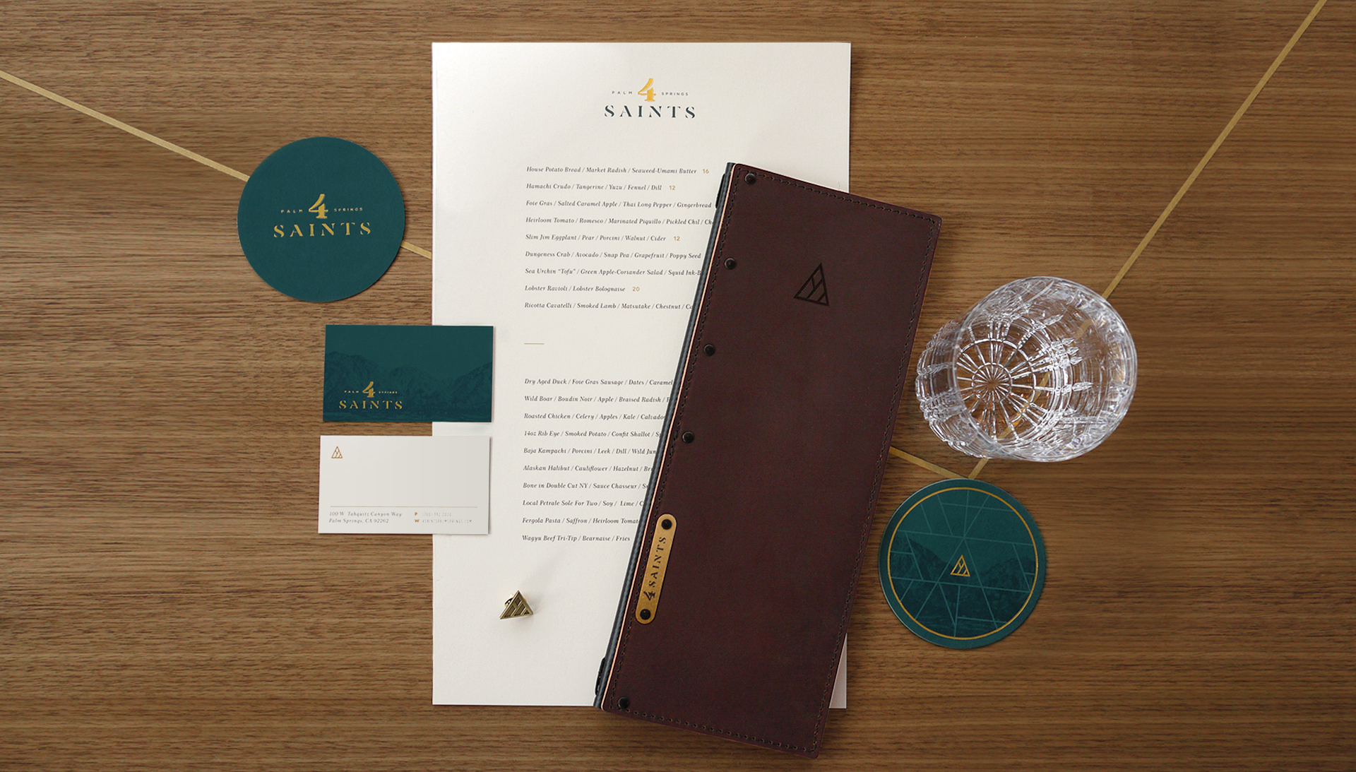 With unparalleled views of picturesque Palm Springs, “4 Saints” provides a unique and modern dining destination for avid tourists and local travelers alike. Inspired by the four prominent peaks of the San Jacinto Mountains, Farm Design developed the brand to exemplify the elevated rooftop restaurant and open bar experience. 4 Saints offers a thoughtful menu of modern American fare and a welcome as warm as the desert sun.