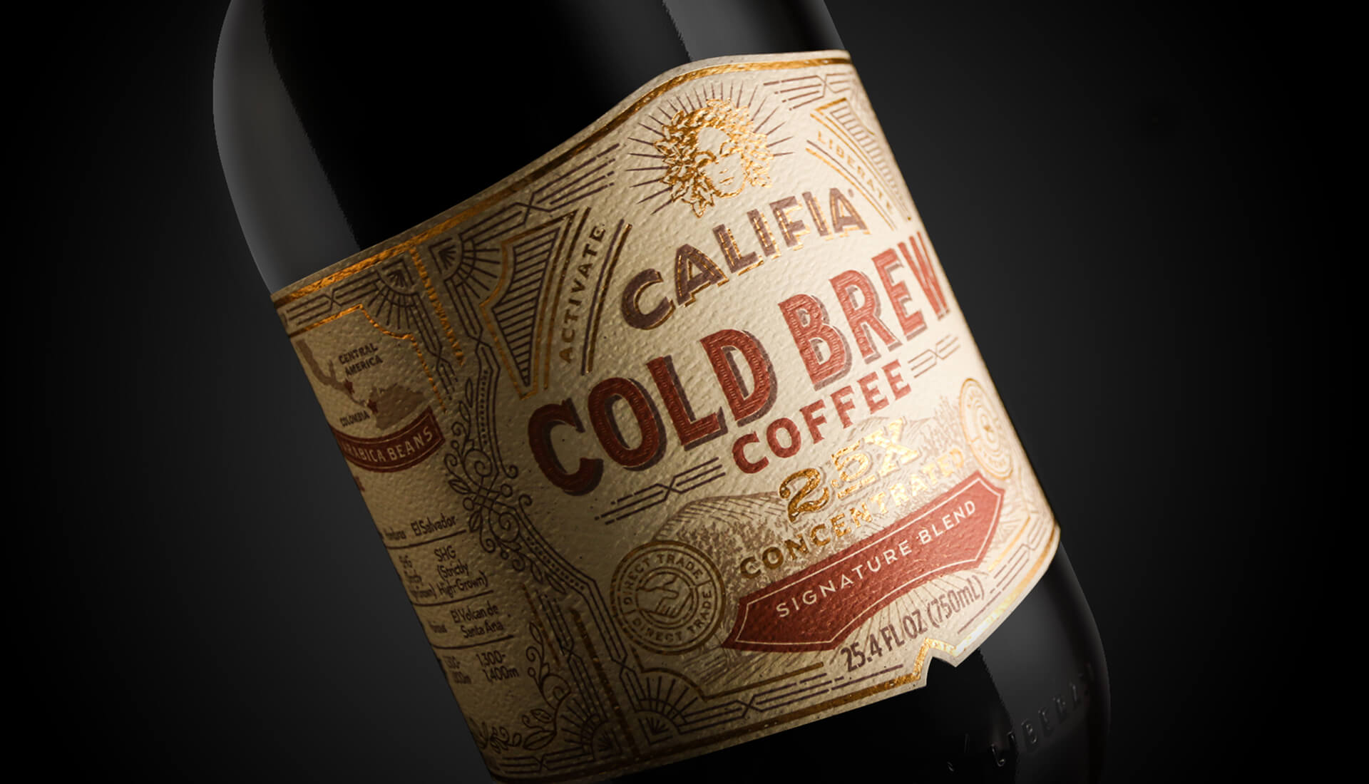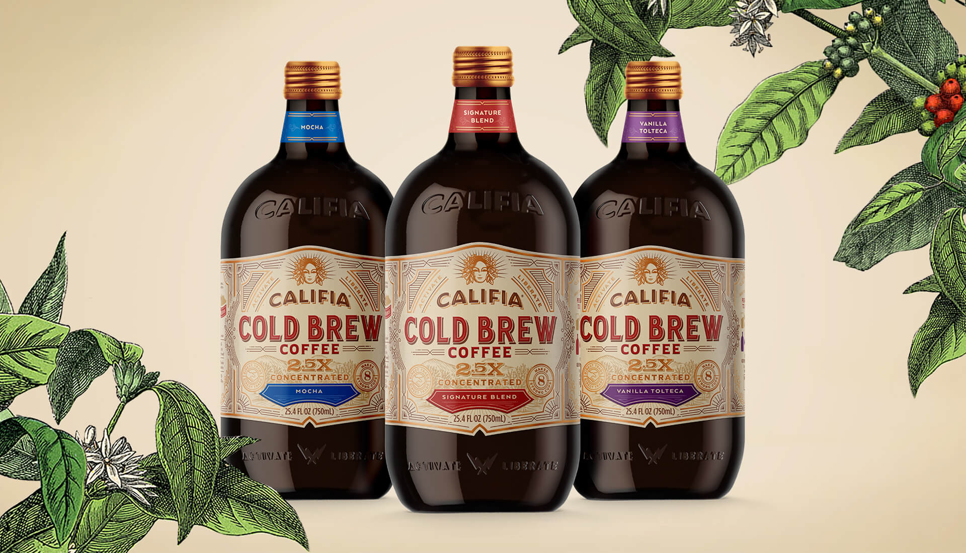 As cold brew coffee's popularity continues to skyrocket, Califia Farms continues to lead with innovation, bringing quality products to all coffee lovers. Prior to the launch of their new line of premium Cold Brew Concentrates, Califia partnered with Farm Design to customize and design the 750mL glass amber bottles.