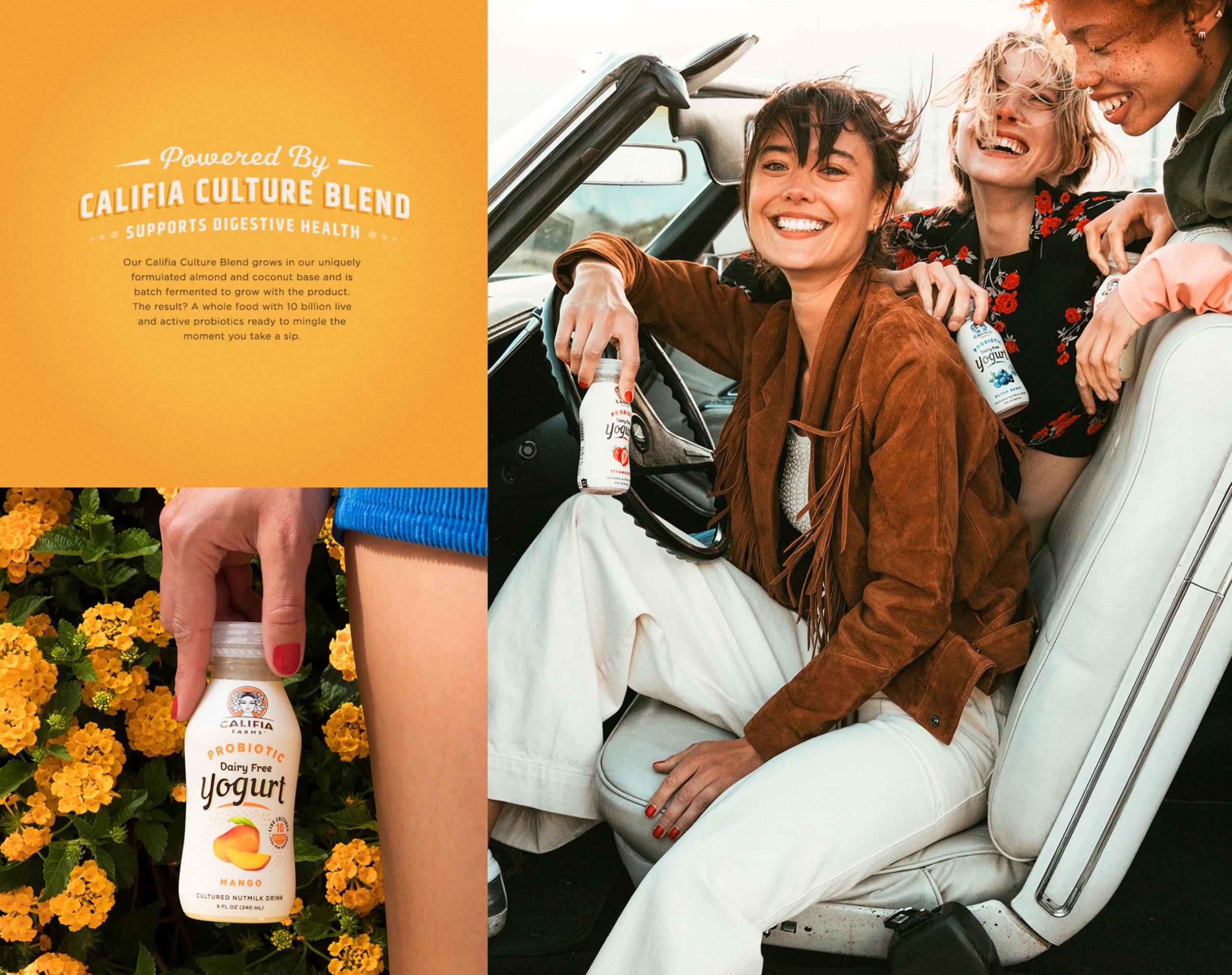 Within the last decade, Califia Farms has successfully been recognized as the fastest-growing natural beverage company in the nation. In the launch of their Probiotic Dairy-Free Yogurt Drinks, Greg Steltenpohl, CEO of Califia Farms, partnered with Farm Design to create a packaging system that clearly communicates the unique brand proposition of their product.