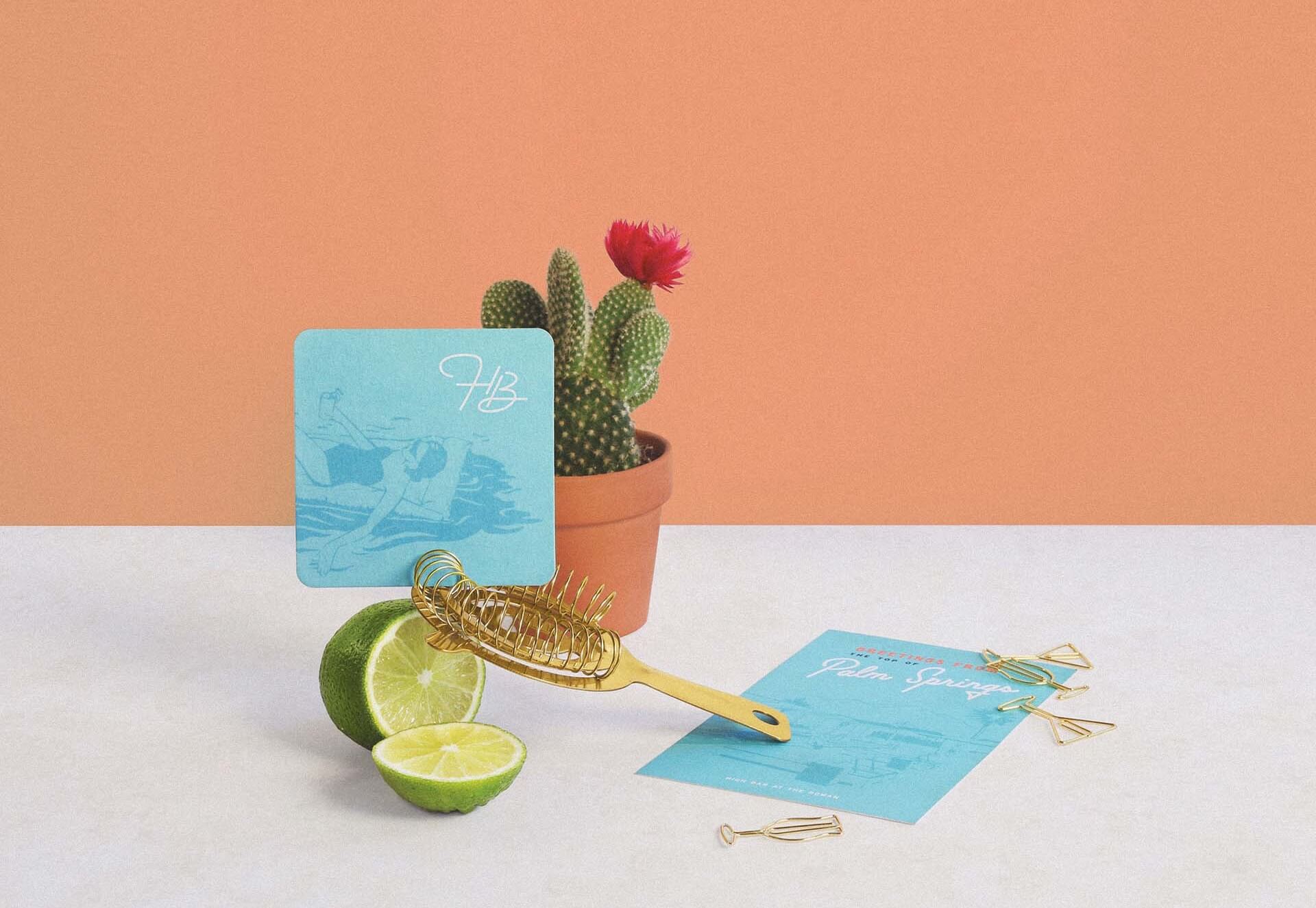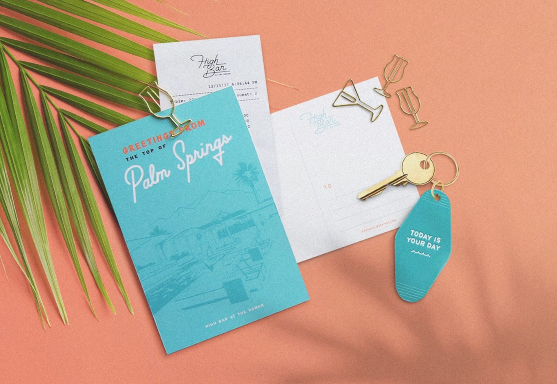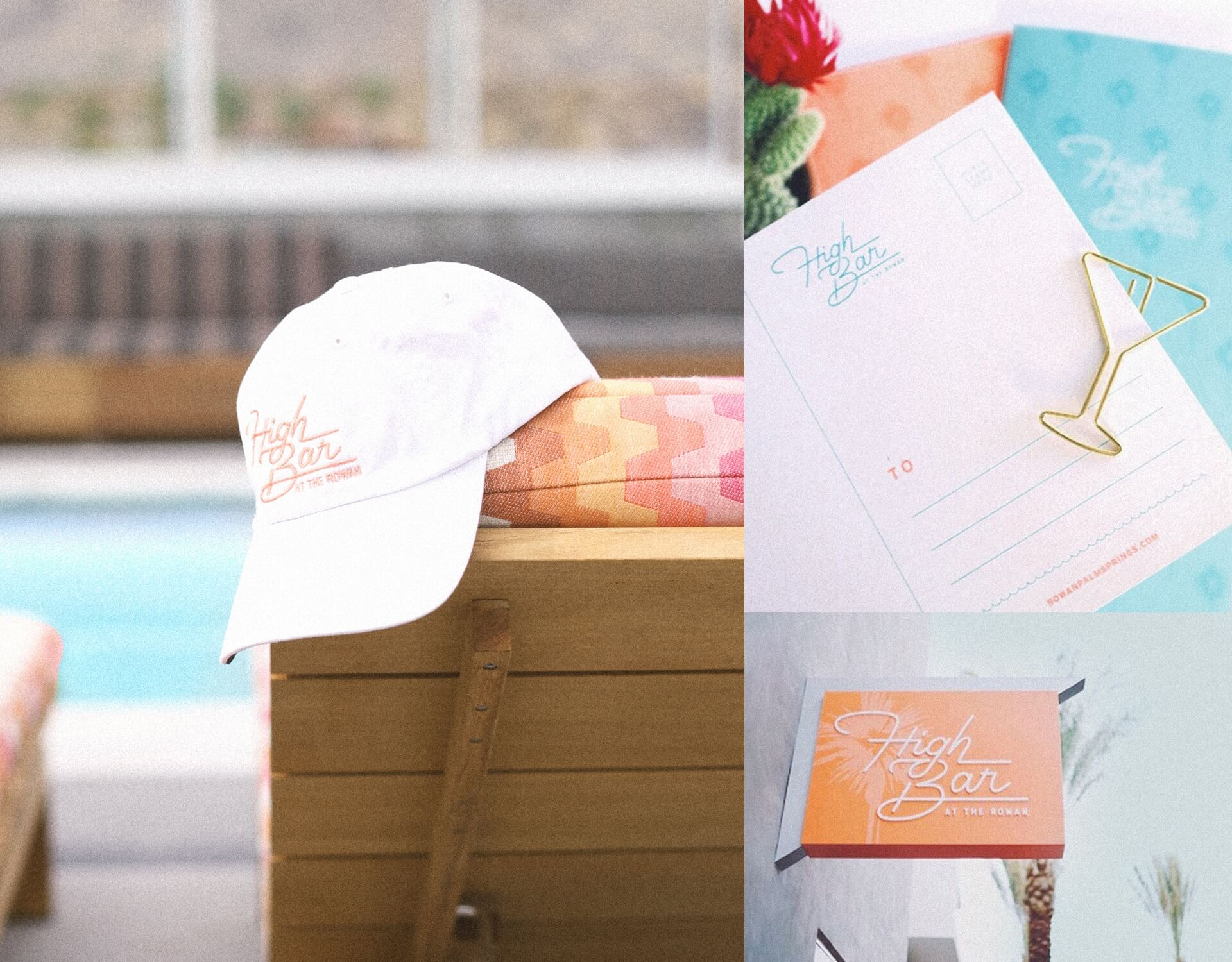 Situated on the rooftop of the tallest building in downtown Palm Springs, you will find “High Bar”, a refreshing pool bar oasis. Delectable drinks, fine finger foods, vivid vistas—it's a no-fail recipe for living the “high life”. With such a fun project at our fingertips, the complete brand system included naming, a logo system, custom illustrations, and playful brand voice that we applied to various touchpoints throughout the pool bar at The Kimpton Rowan Hotel.