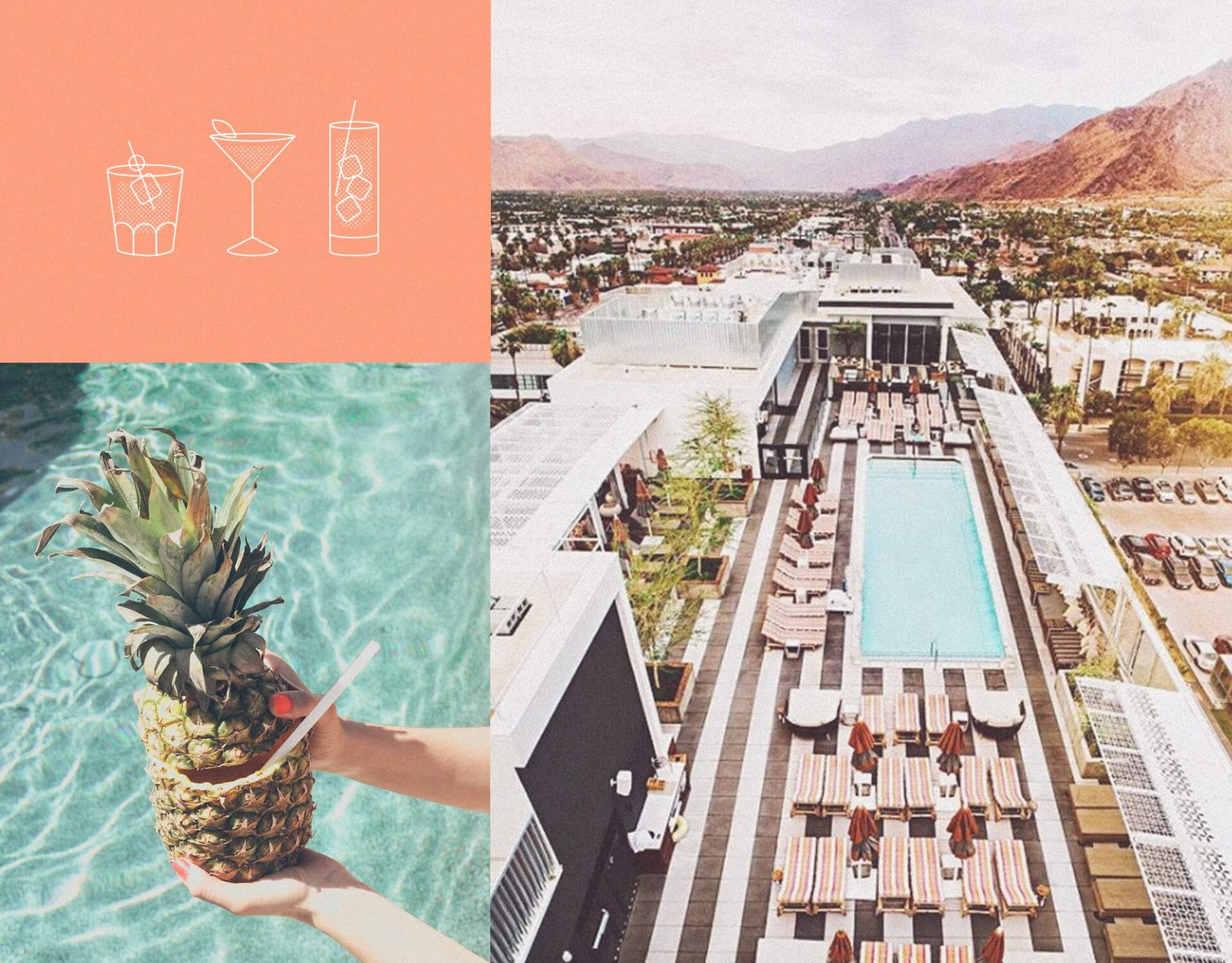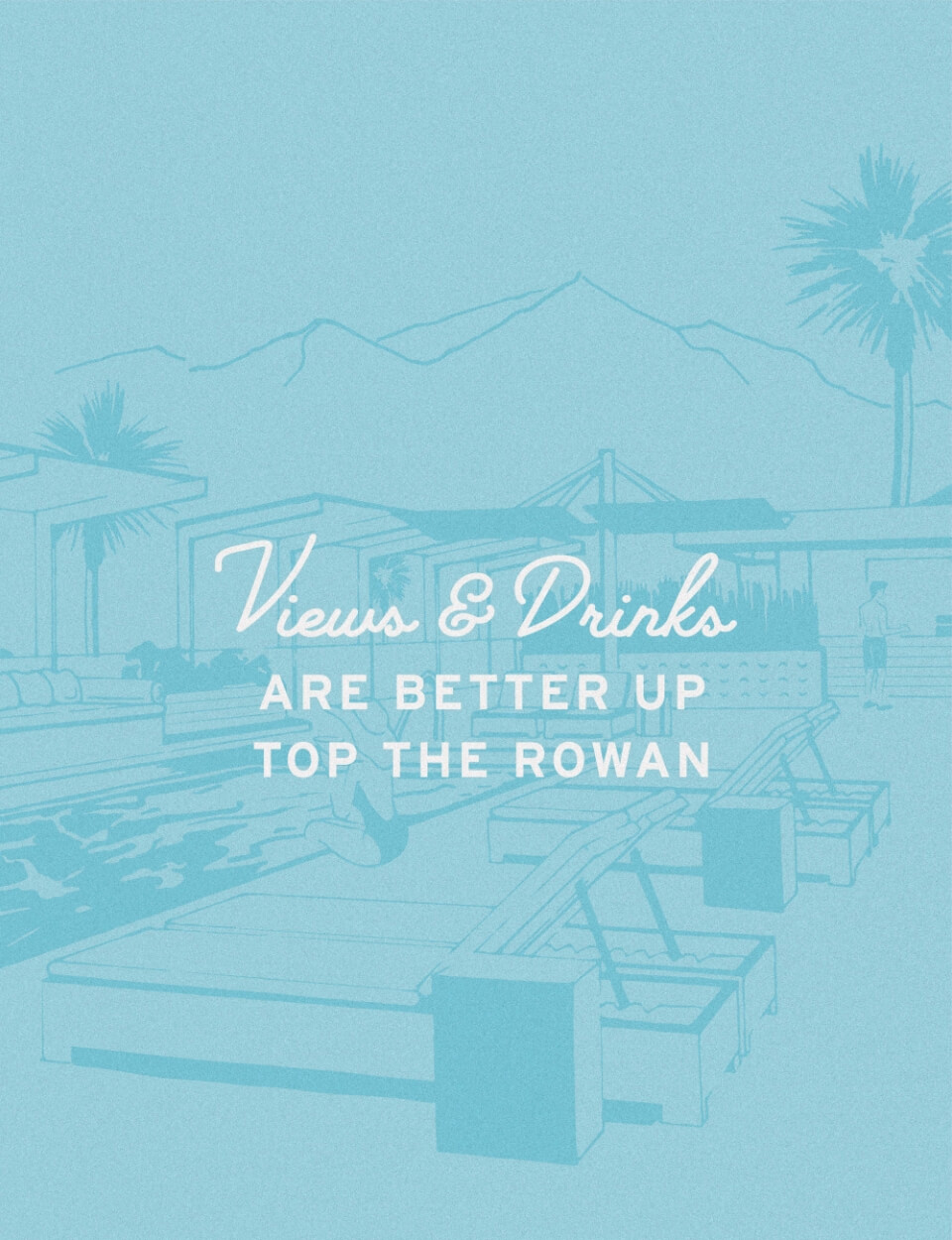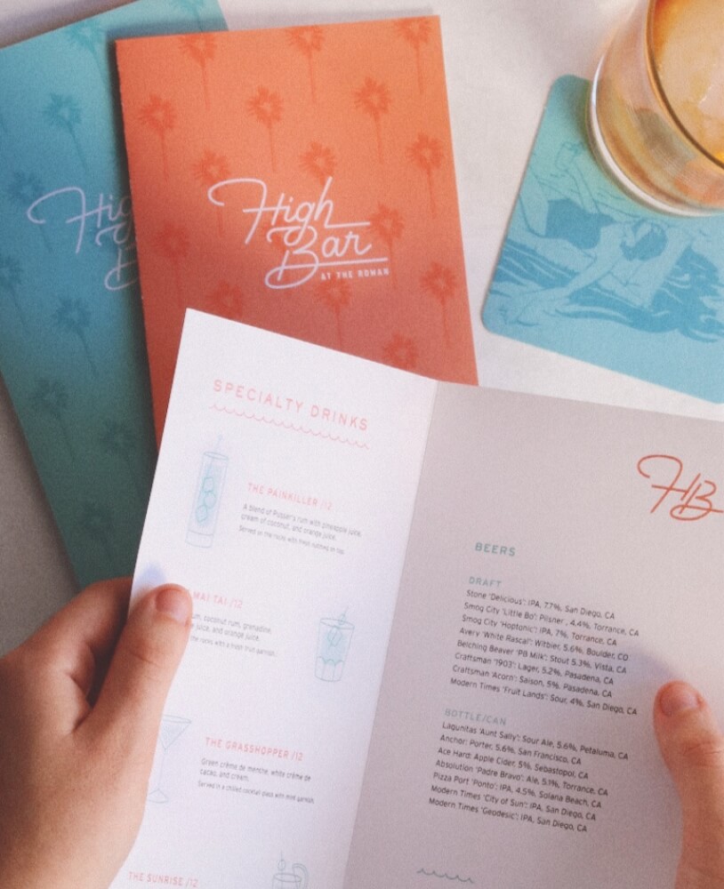 Situated on the rooftop of the tallest building in downtown Palm Springs, you will find “High Bar”, a refreshing pool bar oasis. Delectable drinks, fine finger foods, vivid vistas—it's a no-fail recipe for living the “high life”. With such a fun project at our fingertips, the complete brand system included naming, a logo system, custom illustrations, and playful brand voice that we applied to various touchpoints throughout the pool bar at The Kimpton Rowan Hotel.