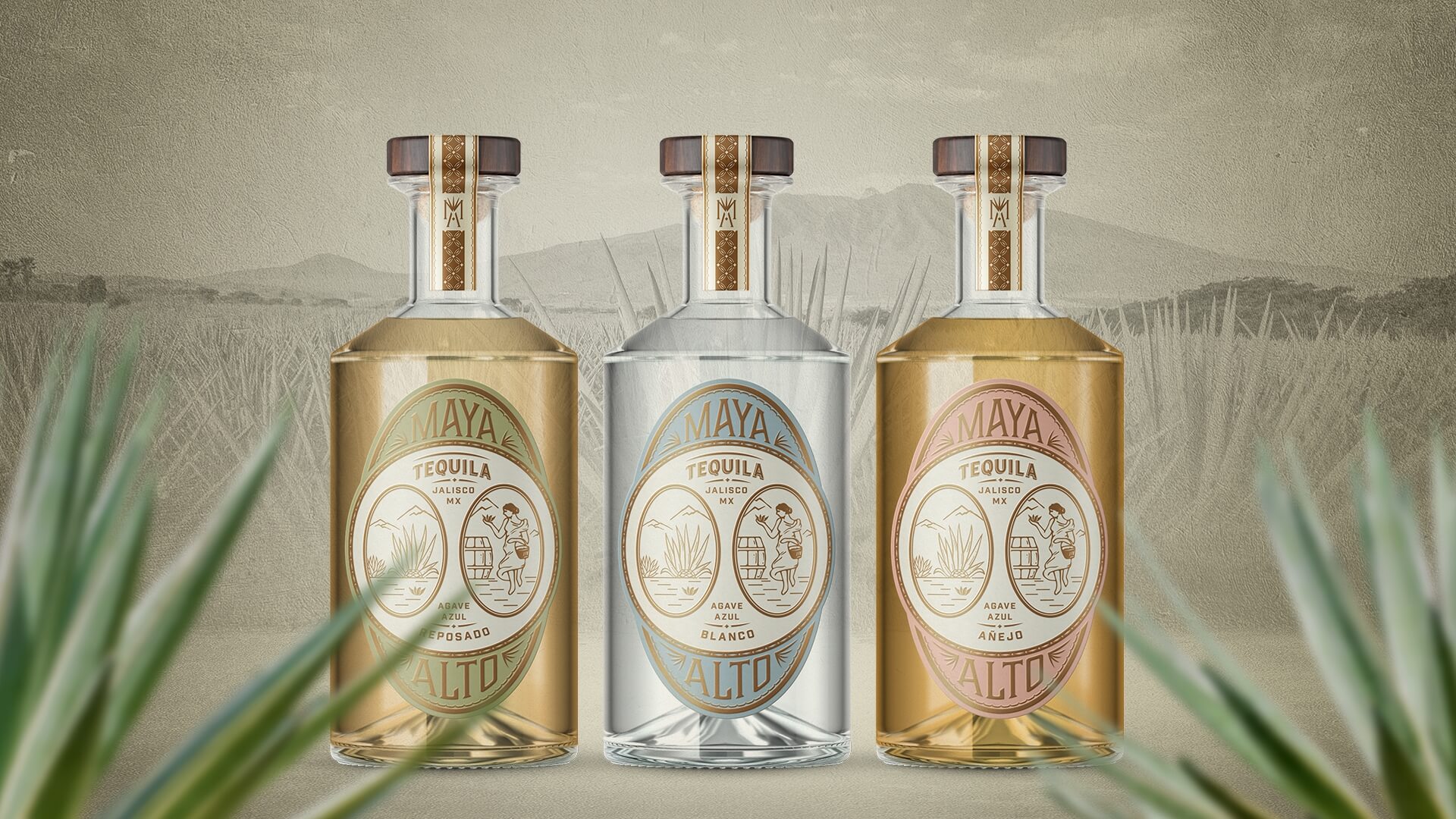 Farm Design retells the legend in a modern light. Mayahuel is depicted harvesting agave for its prized nectar in her well-tended garden. The ovals depict the nurtured soil of Jalisco and the fruitful harvest. Maya Alto disrupts the masculine tequila space with a design that conveys elegance and youthfulness.